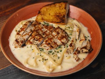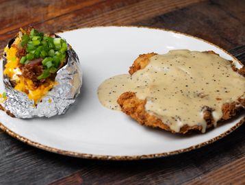 Certified Angus Choice steak, golden brown, whipped potatoes and a salad bar trip.
