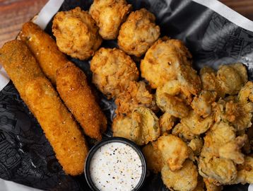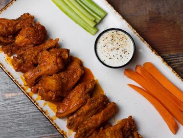Served 10 wings to an order. With your choice of Hot, Cherry Jalapeño BBQ, Cactus Jacks Cajun Butter, or Parmesan Garlic.