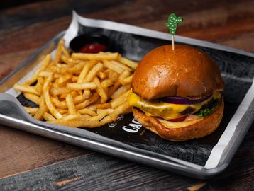 American cheese, lettuce, tomatoes, onion, pickle and No 10. sauce. Served with French Fries.
