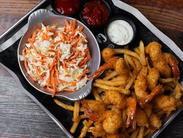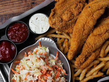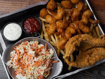 French fries, coleslaw, and house-made cocktail and tarter sauce.