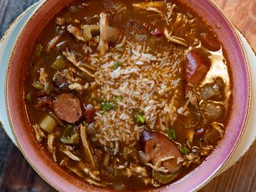 A trip to the salad bar served with a cup of gumbo or tortilla soup